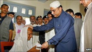 Mr Zardari met flood victims in Sukkur in Sindh province.